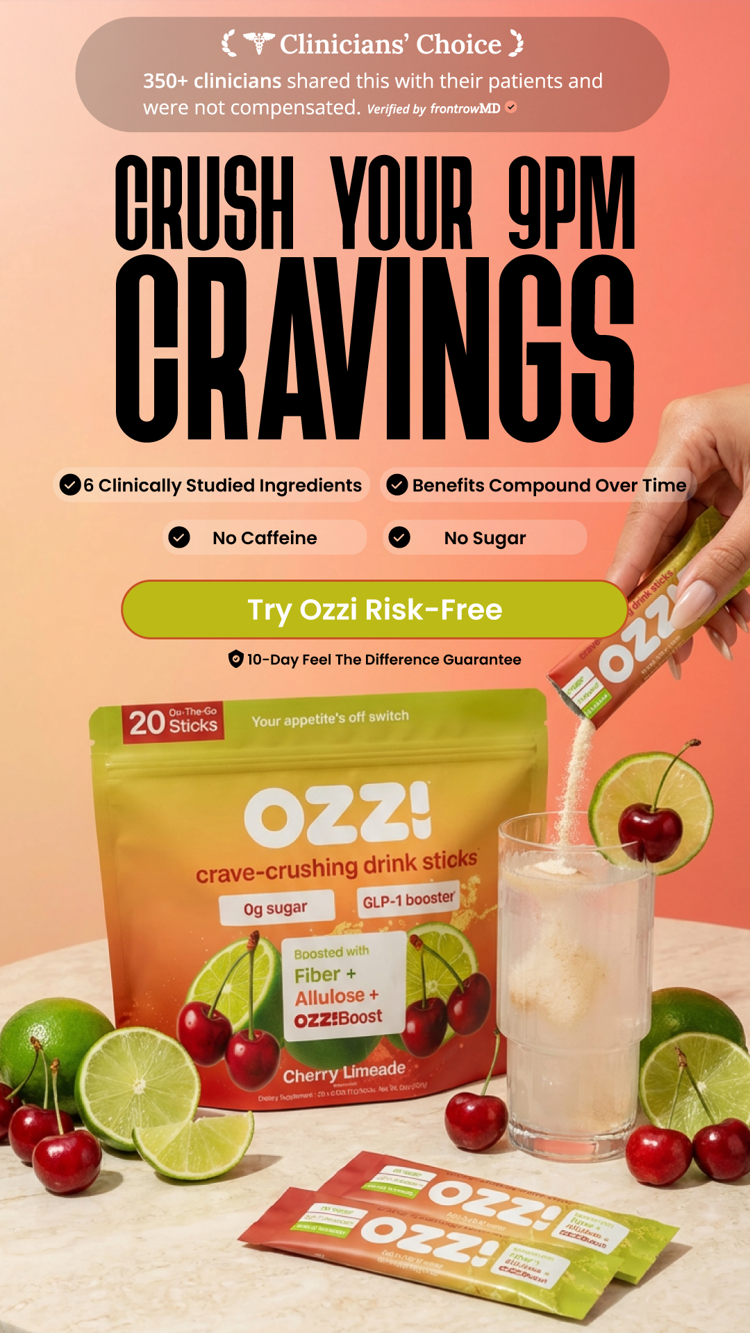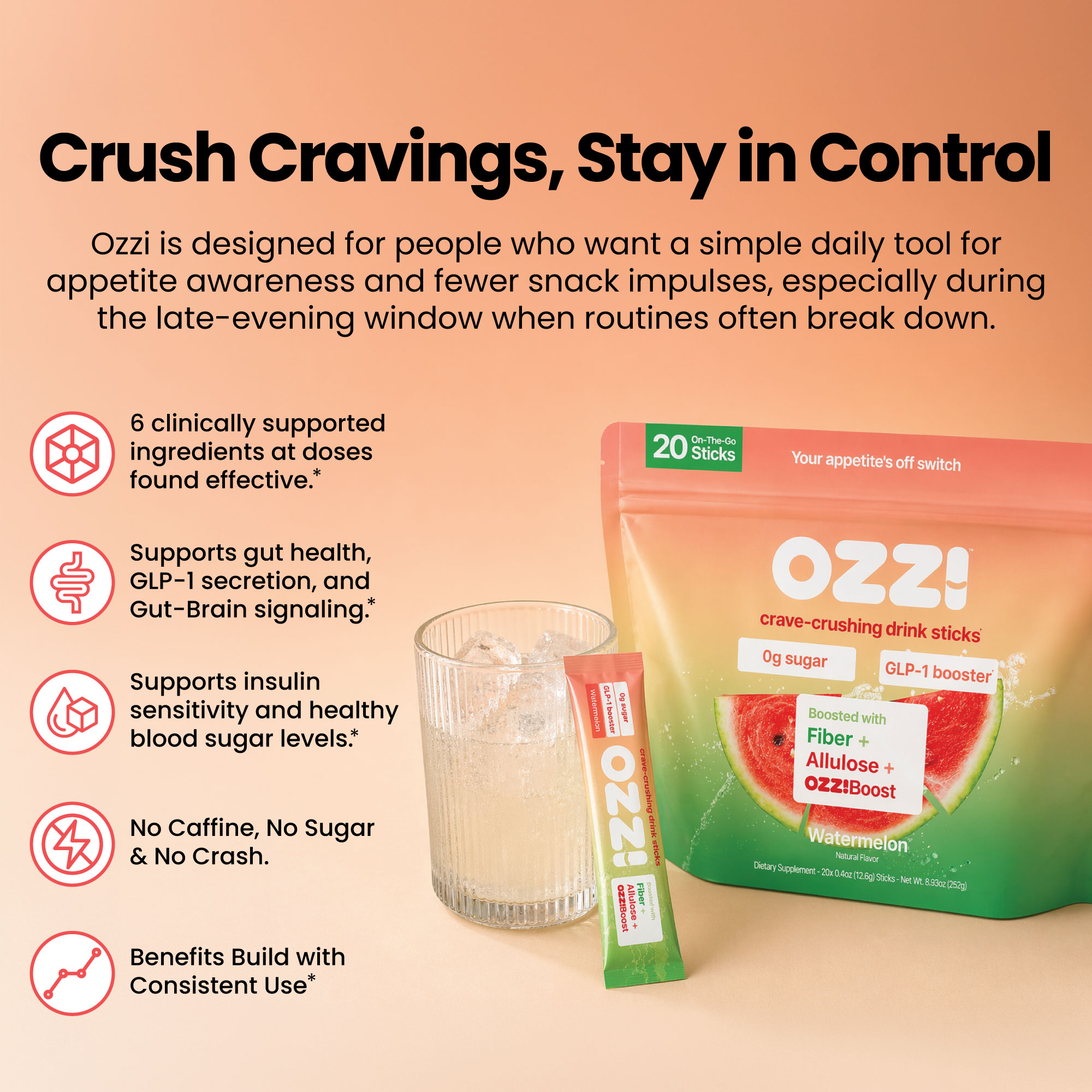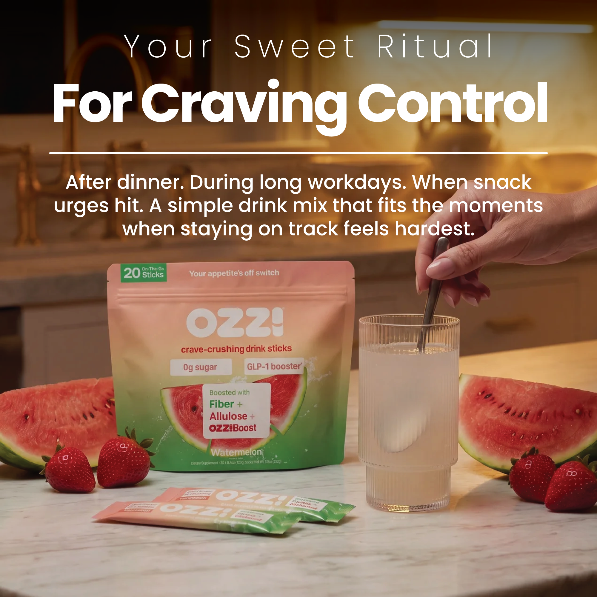 Today, I personally drink 1 or 2 sticks of OZZI per day. As I write this (sipping our watermelon flavor, naturally), I'm no longer at war with my cravings. They haven't disappeared completely, that would be unrealistic, but they've become much more manageable, giving me the mental space and self-control to build healthier habits that stick.